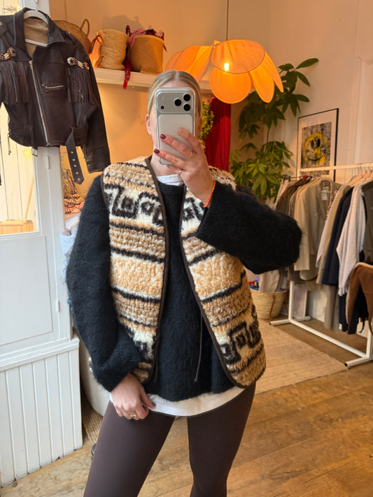 Uitverkocht100% wollen crème vintage gilet