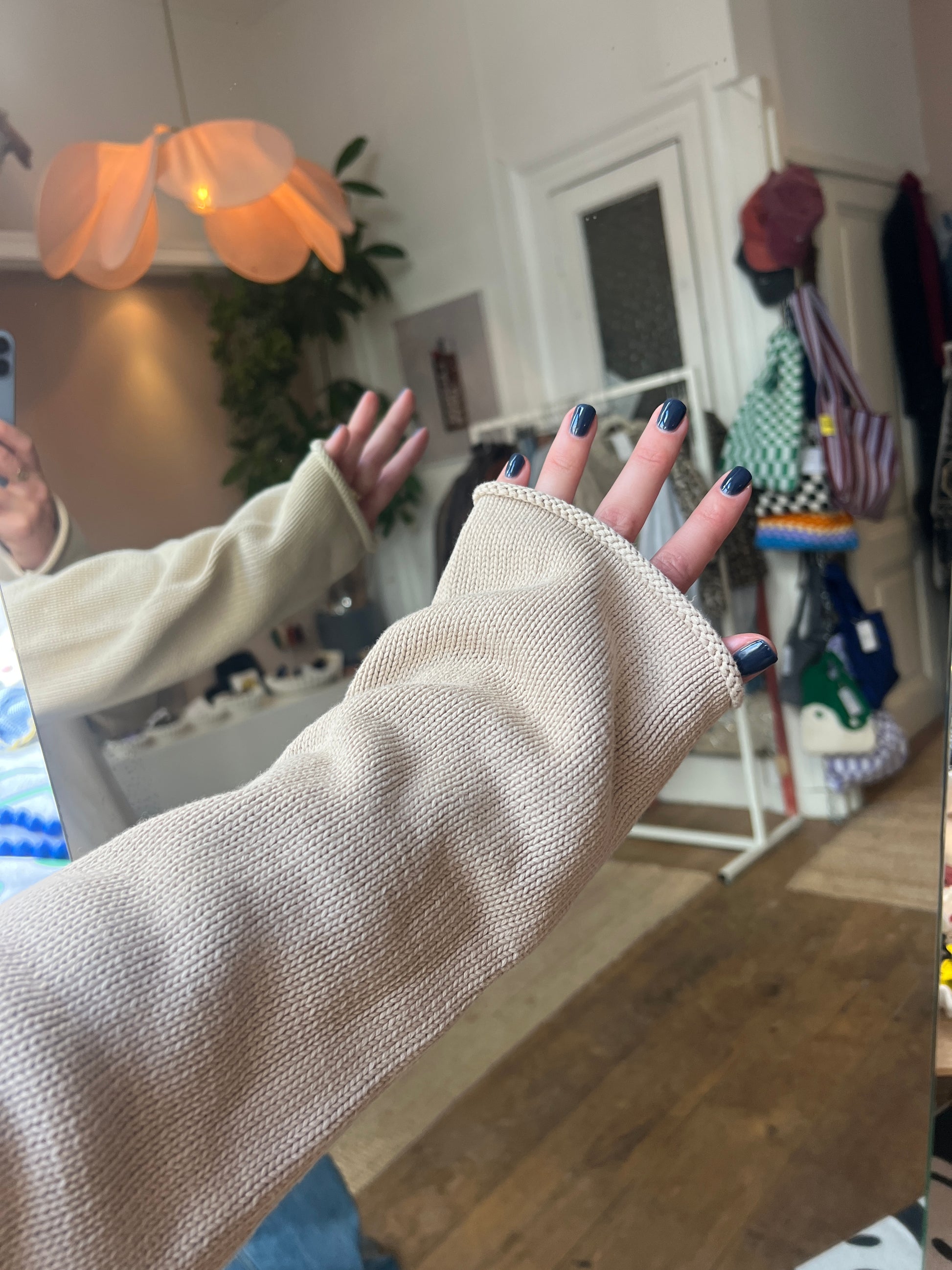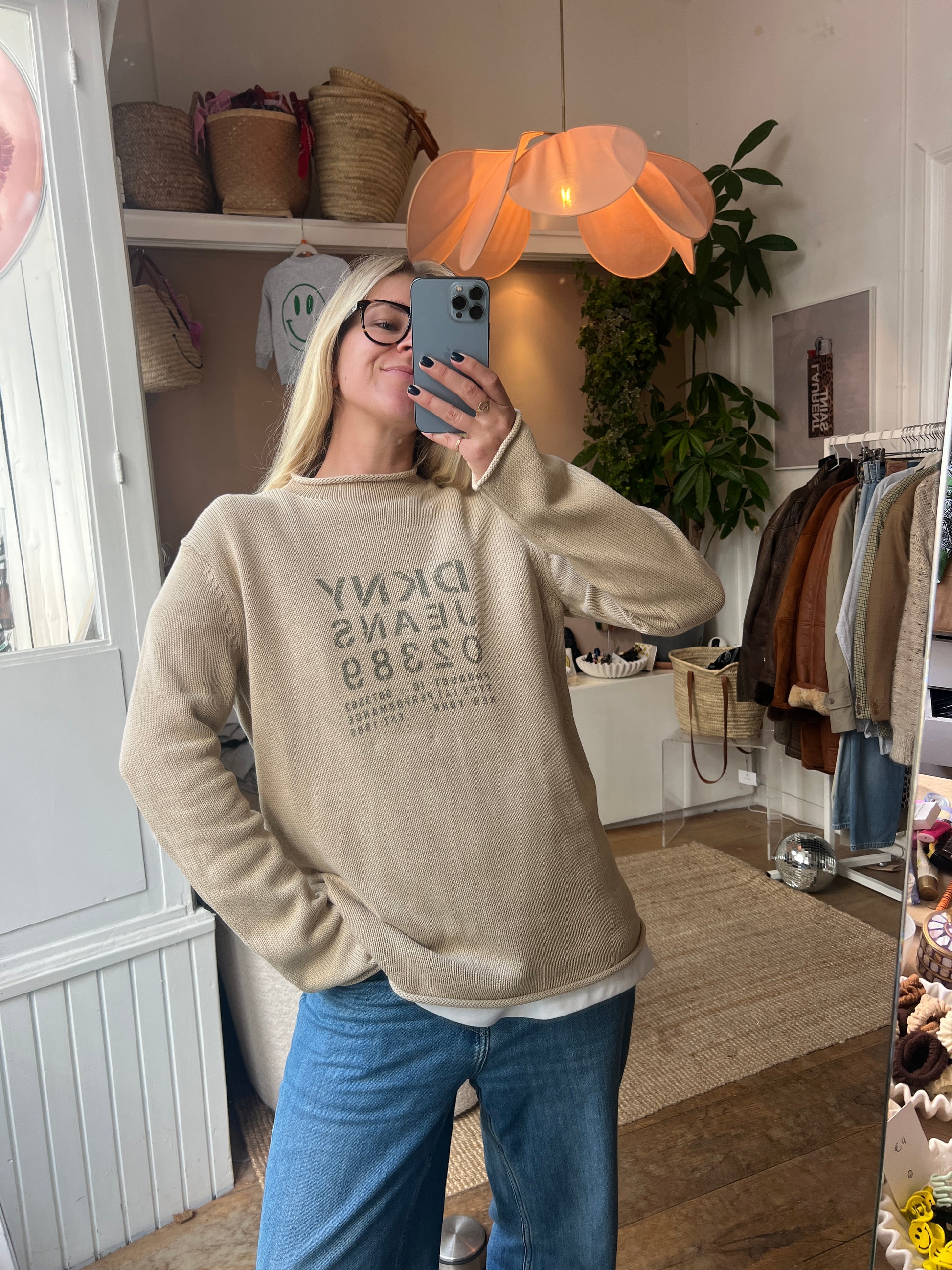 DKNY beige vintage trui maat M/L - Kirsten is 174 en draagt normaal maat M