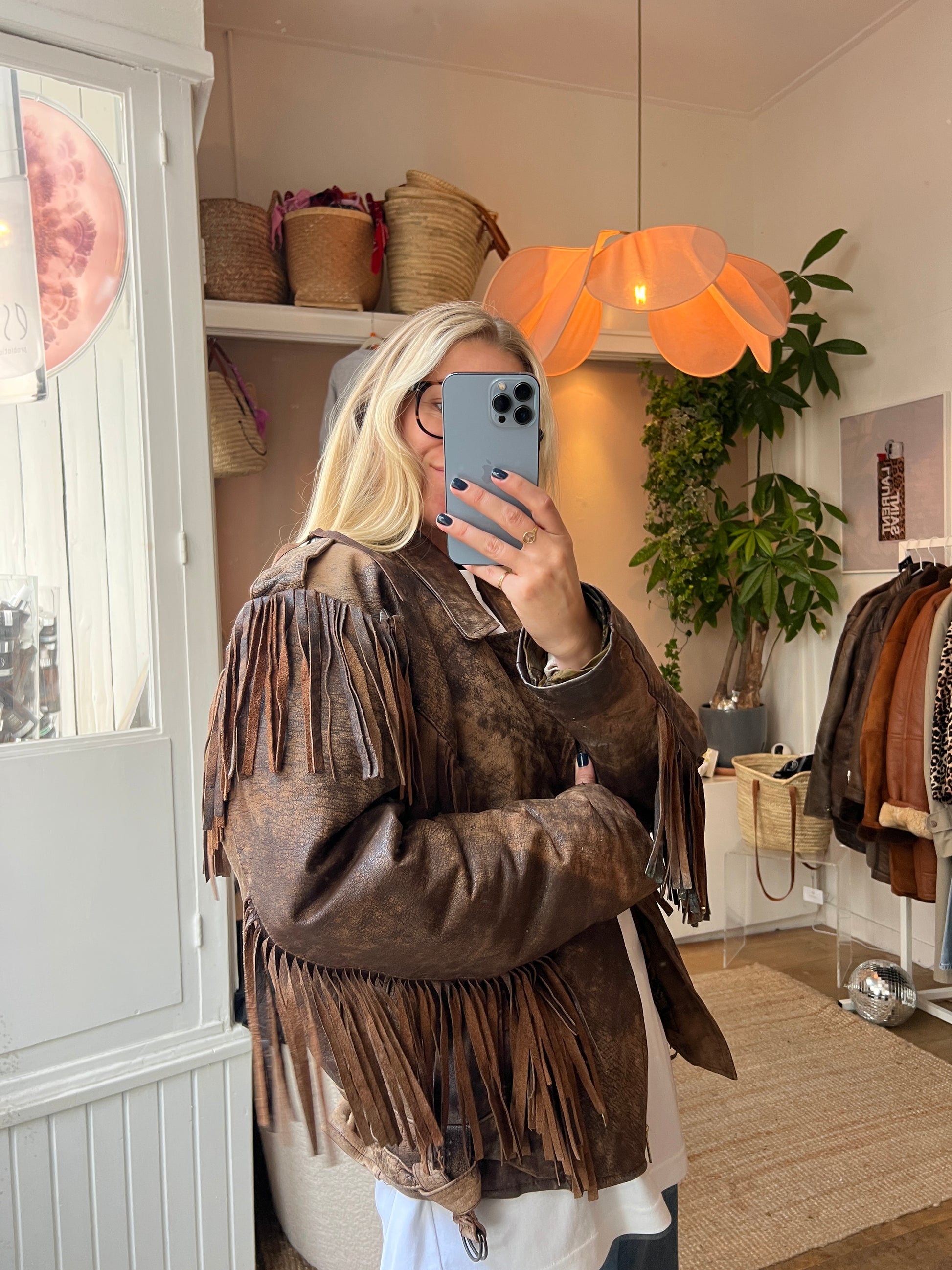 Geweldig bruin leer vintage jack - maat L/XL - heeft aan de achterkant/zijkant wat lichte witte vlekjes (amper zichtbaar) - Kirsten is 174 en draagt normaal maat M